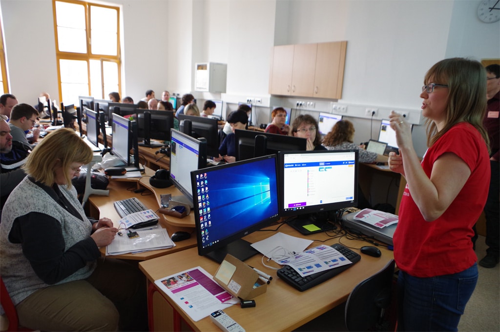 Účastníci jubilejního patnáctého ročníku celostátní konference učitelů ZŠ a SŠ “Počítač ve škole” se měli možnost ve dnech 27-29.3.2018 v Novém Městě na Moravě blíže seznámit s možnostmi a výukou prostřednictvím BBC micro:bit.