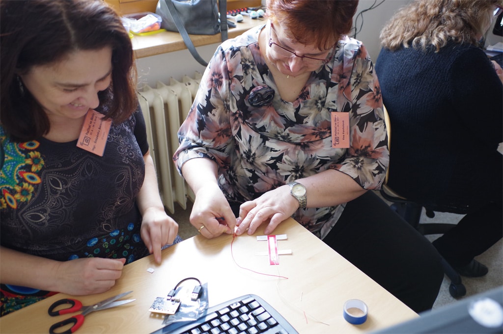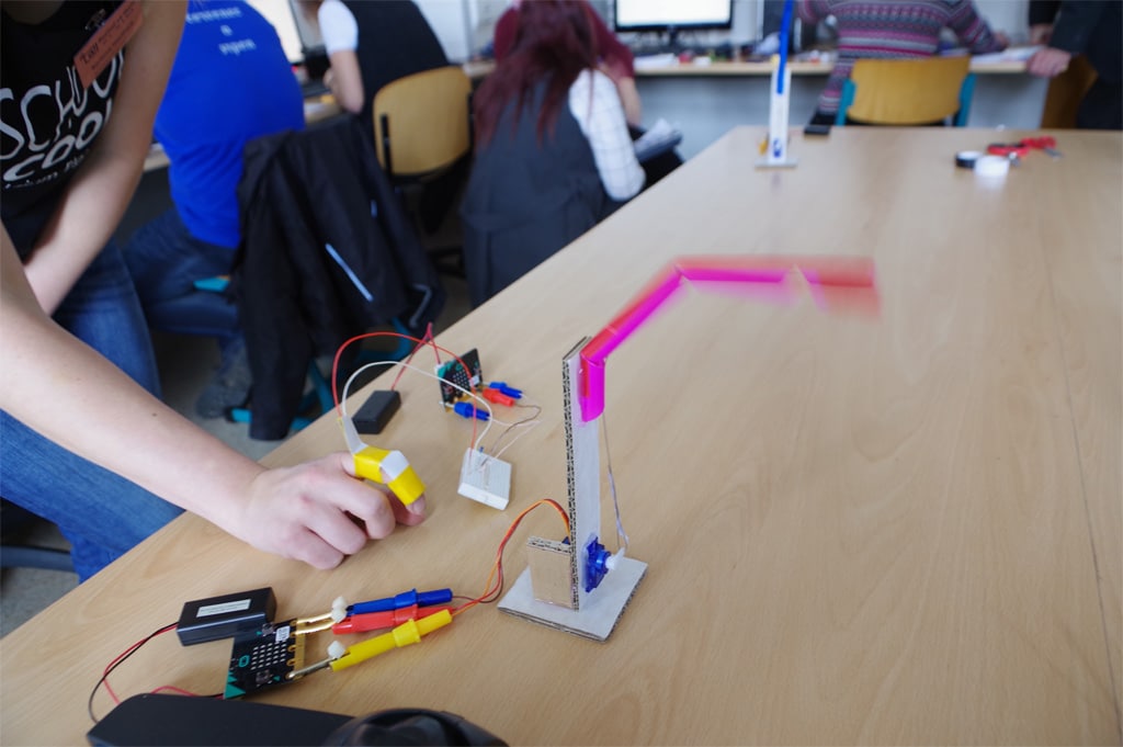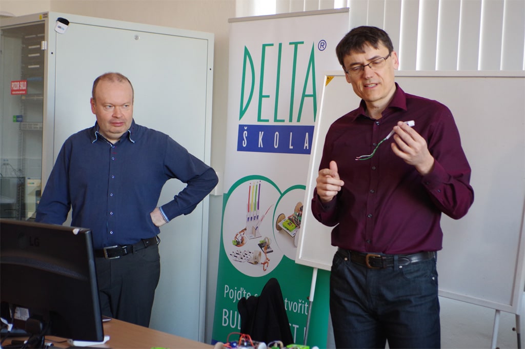 V následném programu připravila p.Havířová 45minutový workshop, kde měli učitelé možnost si vyzkoušet programování BBC micro:bit od úplných základů. Další den pak p.P.Čáp a p.Formánek z Delta SŠIE připravili 90ti minutový workshop s příkladem využití micro:bitů v robotice – stavbou dálkově ovládaného robotického prstu. Nadační fond micro:la podpořil oba workshopy zapůjčením micro:bitů takže se dostal do roku opravdu všem zájemcům.
